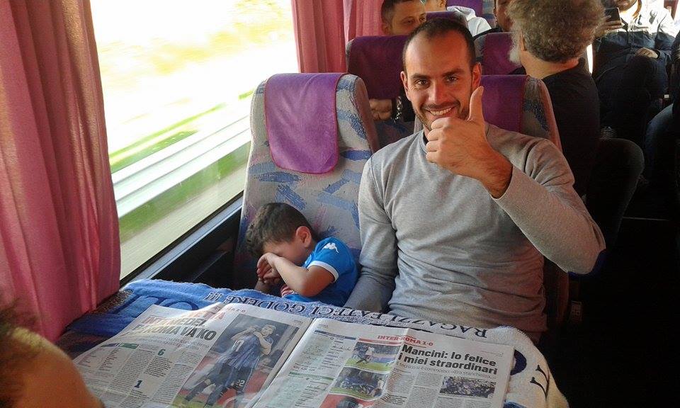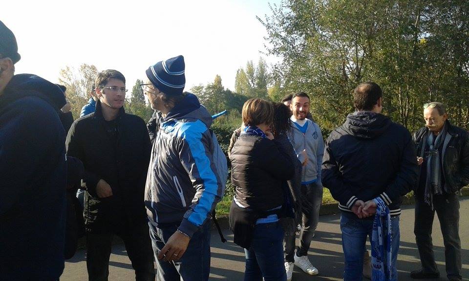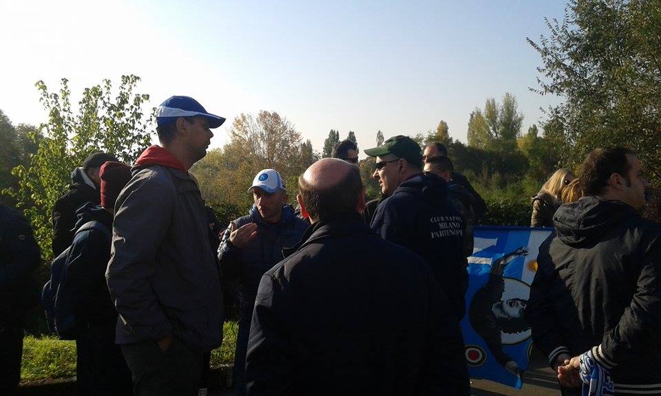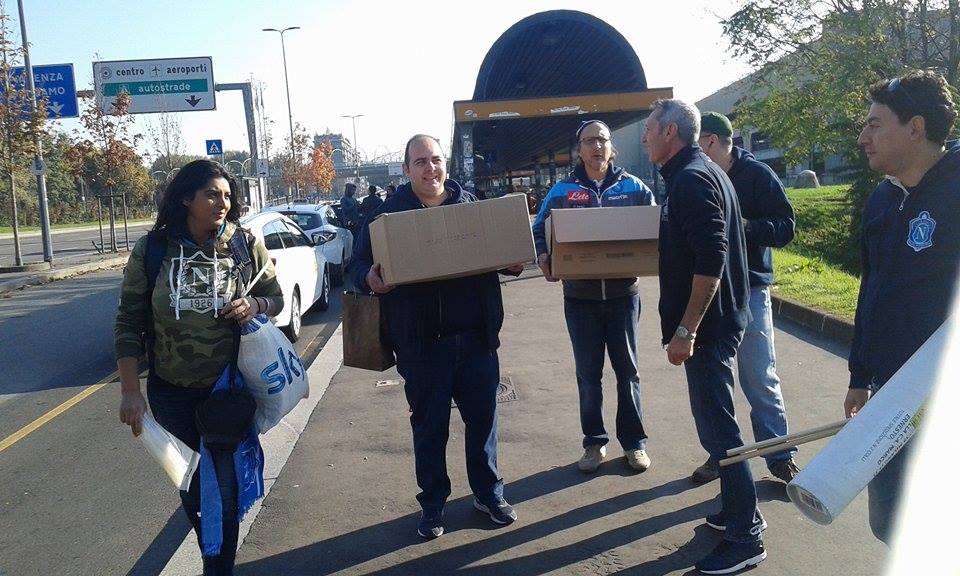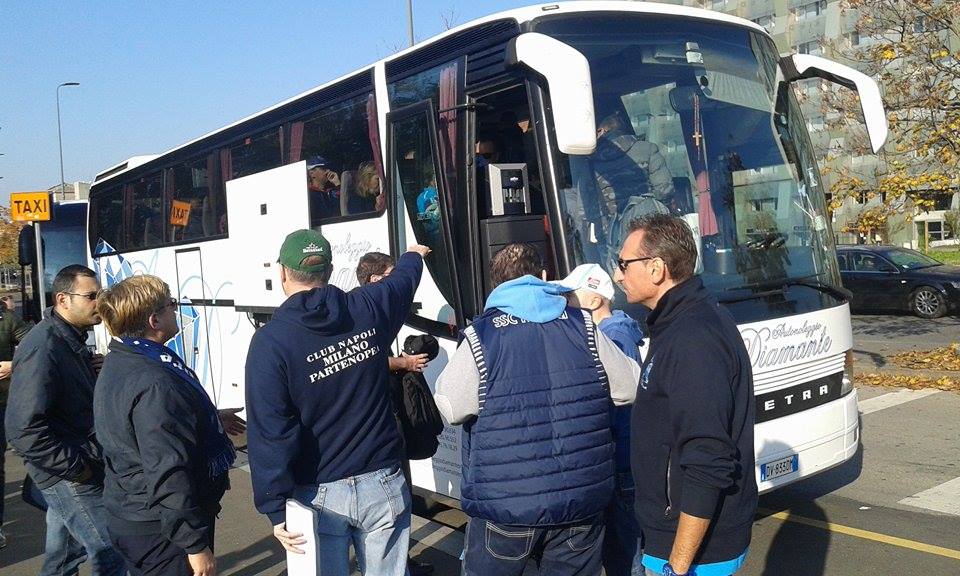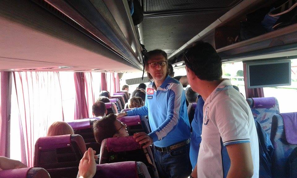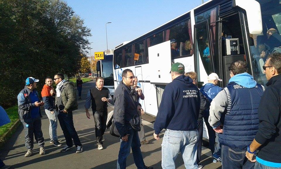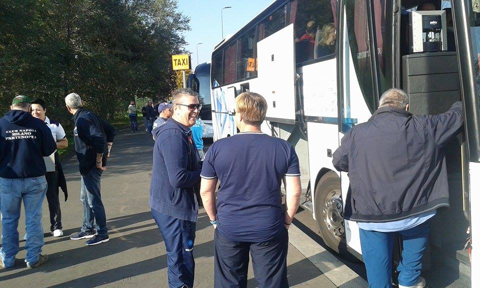 Napoli Milano Partenopea e il Club Tranvieri due club uniti una sola forza verso genova. Le prime immagini scattate da Angelo Aniello De Vita, ecco la partenza. Anche donne e bambini nel gruppone di 100 azzurri.