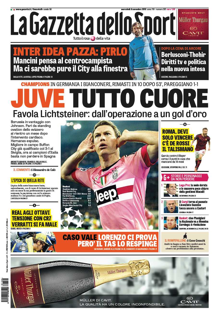 CalcioNewsRassegna Stampa [Foto] Gazzetta dello Sport – “La favola Lichtsteiner, dall’ operazione al gol!” By Giuseppe Sacco il Nov 4, 2015 - 07:46:04 0 Condividi Factory della Comunicazione 0 Condividi FacebookTwitterGoogle+ReddItWhatsAppPinterestE-mail