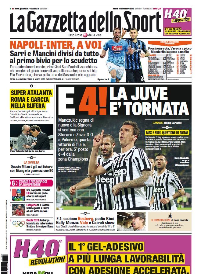 CalcioNewsRassegna Stampa Gazzetta dello Sport – Sarri e Mancini divisi da tutto, al primo bivio per lo scudetto By Giuseppe Sacco il Nov 30, 2015 - 09:00:45 0 Condividi Factory della Comunicazione CalcioManciniNapoliSarri 0 Condividi FacebookTwitterGoogle+ReddItWhatsAppPinterestE-mail