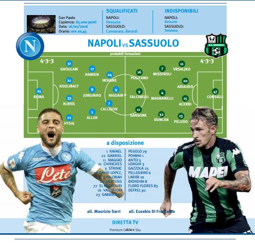 Napoli-Sassuolo: le probabili formazioni di “Emozionapoli”