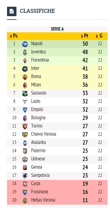 CalcioNewsSenza categoria La classifica dopo il posticipo del derby: Napoli e Juve sempre più lontane By Giuseppe Sacco il Gen 31, 2016 - 23:15:28 0 Condividi Napoli a più otto dalla terza e più due dalla Juventus Factory della Comunicazione FiorentinaJuveNapoli 0 Condividi FacebookTwitterGoogle+ReddItWhatsAppPinterestE-mail