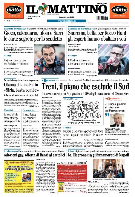 Anche oggi in prima pagina Sarri prende il suo spazio. Tredici partite fino a maggio, fattori decisivi la tenuta dal punto di vista mentale e la condizione atletica delle squadre. Gli azzurri pronti a ripartire ma prima della sfida al Milan c’è il Villarreal in Europa.