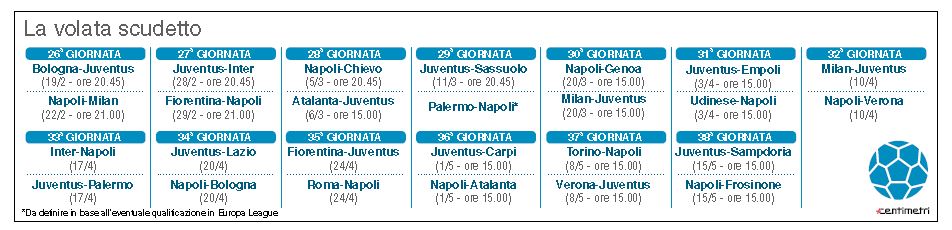 CalcioNewsRassegna Stampa Grafico – La volata scudetto dalla 26 ^ alla 38 ^ giornata By Giuseppe Sacco il Feb 15, 2016 - 08:40:56 0 Condividi Ecco il cammino per il tricolore Factory della Comunicazione NapoliScudettovolata 0 Condividi FacebookTwitterGoogle+ReddItWhatsAppPinterestE-mail