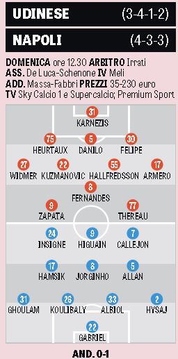 CalcioNews Le formazioni probabili di Udinese e Napoli By Giuseppe Sacco il Apr 1, 2016 - 20:00:25 0 Condividi Eccole secondo la Gazzetta dello Sport Factory della Comunicazione FormazioniNapoliUdinese 0 Condividi FacebookTwitterGoogle+ReddItWhatsAppPinterestE-mail
