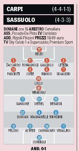 CalcioNews Serie A – Carpi – Sassuolo (ore 18,00) le possibili formazioni By Giuseppe Sacco il Apr 2, 2016 - 17:00:50 0 Condividi Factory della Comunicazione CaroiFormazioniSassuolo 0 Condividi FacebookTwitterGoogle+ReddItWhatsAppPinterestE-mail