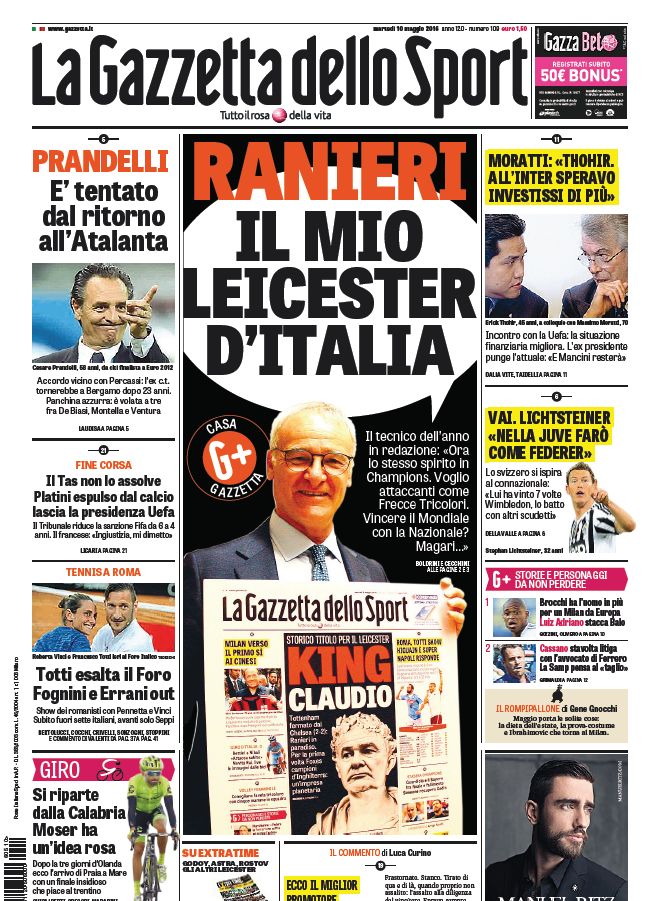 CalcioIn EvidenzaNews Edicola sportiva del 10 maggio, le prime pagine By Giuseppe Sacco il Mag 10, 2016 - 08:30:39 0 Condividi Factory della Comunicazione CalcioNapoliPagineprime 0 Condividi FacebookTwitterGoogle+ReddItWhatsAppPinterestE-mail