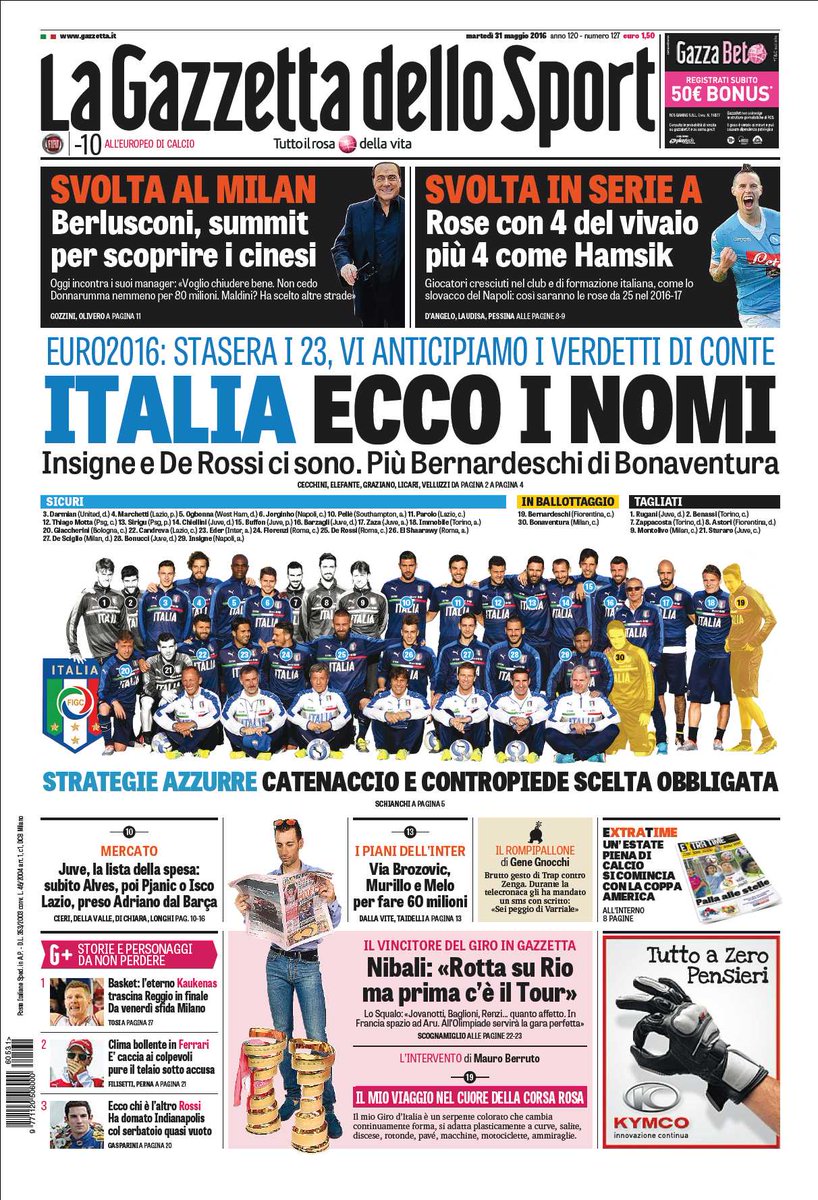 CalcioIn EvidenzaNews Edicola sportiva del 31 maggio , le prime pagine By Giuseppe Sacco il Mag 31, 2016 - 09:00:12 0 Condividi Factory della Comunicazione EdicolaPagineprimeSportiva 0 Condividi FacebookTwitterGoogle+ReddItWhatsAppPinterestE-mail