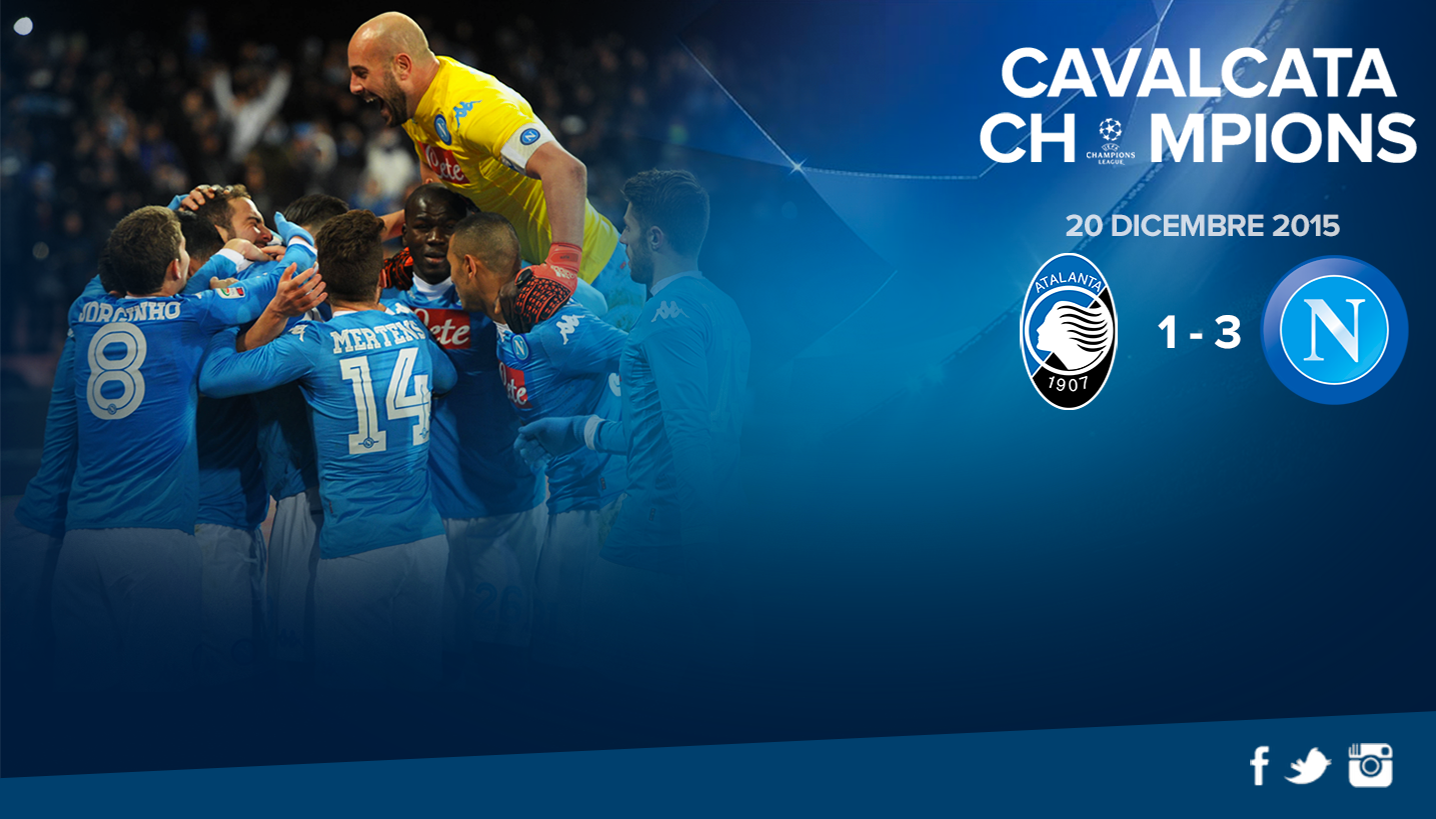 Il Napoli vince a Bergamo dopo 6 anni e conquista lo Stadio Azzurri d’Italia a pochi giorni dal Natale. Segnano Hamsik ed Higuain: H2Gol, la formula della felicità. Poco prima dell’ora di gioco, Marek infila il rigore che apre la strada. Poi Gonzalo apre il repertorio del bomber perfetto: prima gira di testa su un angolo di Jorginho, poi chiude con l’inchino sul sipario a 5 minuti dal novantesimo: progressione elegante e potente. Doppietta e 50esimo gol in Serie A. Le nozze d’oro di “Golzalo”. Chiudiamo il 2015 alla grande con dieci vittorie in campionato, sei in Europa League ed una in Coppa Italia. L’avventura continuerà nell’anno che verrà…