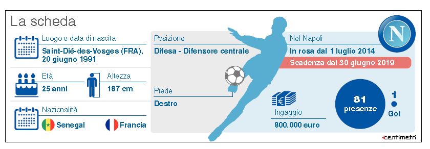 Kalidou Koulibaly(24 anni), al secondo anno con la maglia azzurra ha un contratto che lo lega al Napoli fino al giugno 2019