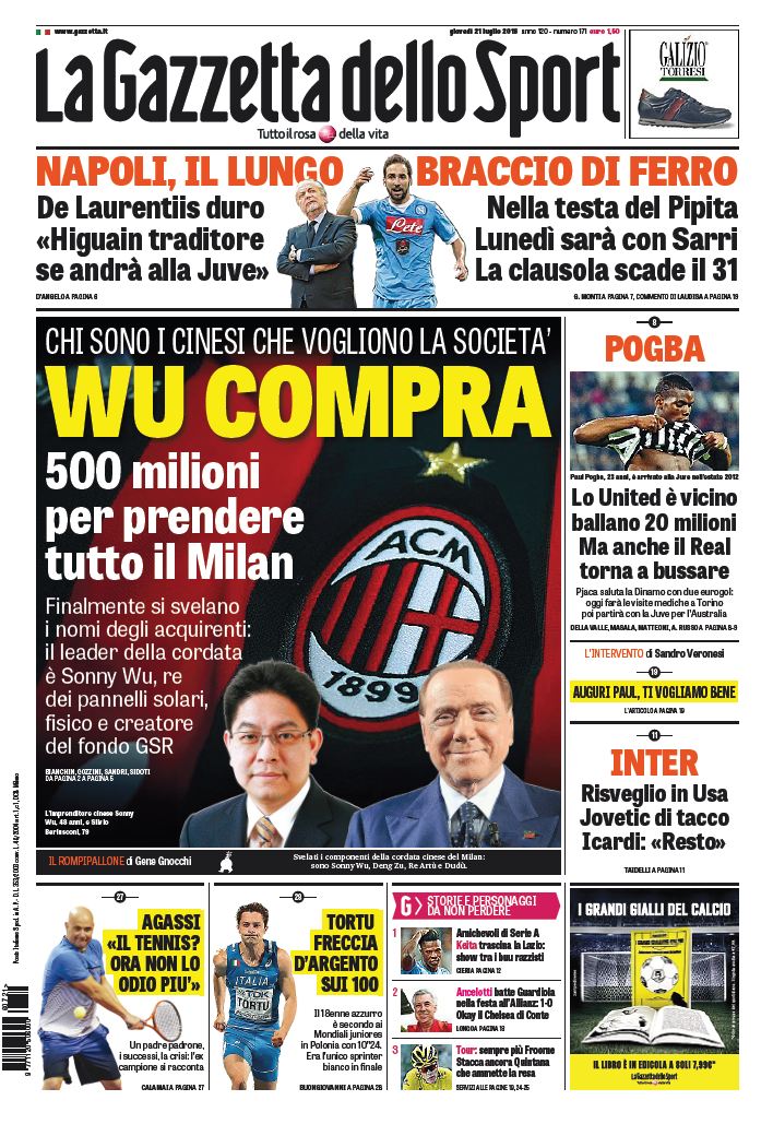 NewsCalcioIn Evidenza L’ edicola sportiva del 21 luglio, le prime pagine By Giuseppe Sacco il Lug 21, 2016 - 07:27:28 0 Condividi Si legge oggi sui principali quotidiani sportivi Factory della Comunicazione EdicolaPagineprimeSportiva 0 Condividi FacebookTwitterGoogle+ReddItWhatsAppPinterestE-mail
