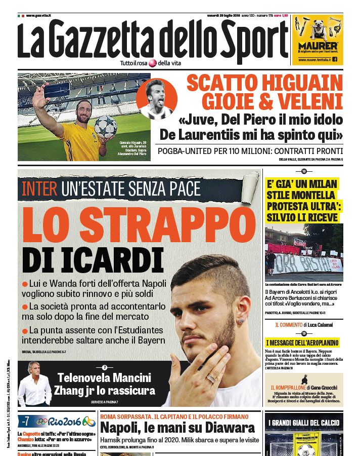 NewsCalcioIn Evidenza Le prime pagine, edicola sportiva del 29 luglio By Giuseppe Sacco il Lug 29, 2016 - 08:00:40 0 Condividi Factory della Comunicazione EdicolaPagineprime 0 Condividi FacebookTwitterGoogle+ReddItWhatsAppPinterestE-mail