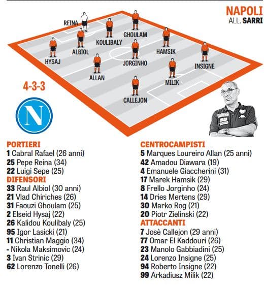 CalcioNewsRassegna Stampa La formazione del Napoli a fine mercato By Giuseppe Sacco il Set 2, 2016 - 19:45:24 0 Condividi La Gazzetta dello Sport fornisce questo grafico del Napoli Factory della Comunicazione fineformazionegraficomercato. 0 Condividi FacebookTwitterGoogle+ReddItWhatsAppPinterestE-mail