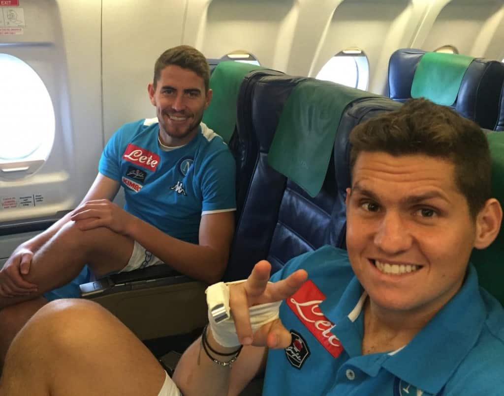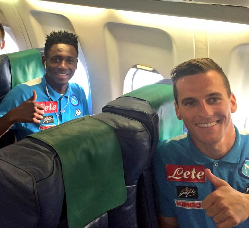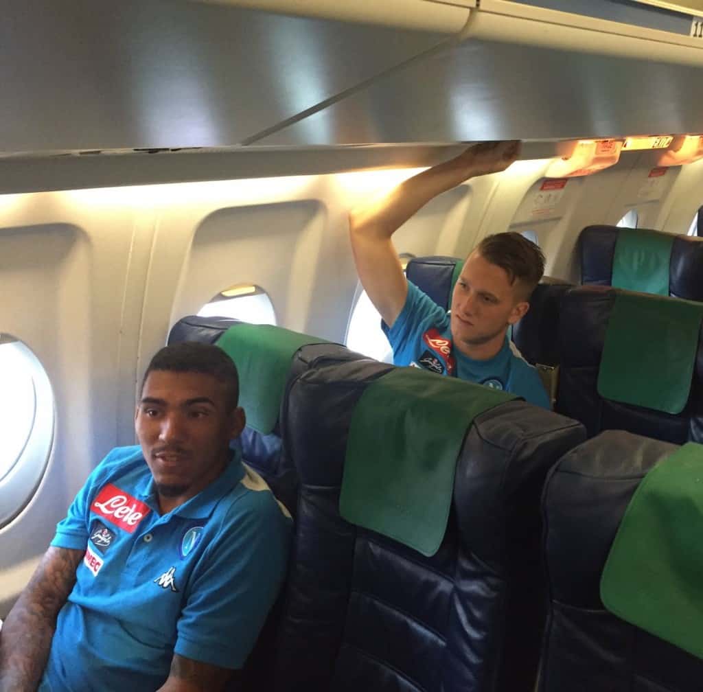 Il Napoli è sull’aereo che lo porterà Genova dove domani sera affronterà a “Marassi” la squadra rossoblu. Ecco le foto della squadra.