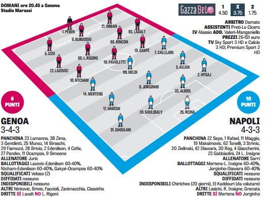 CalcioNewsRassegna Stampa Le formazioni di Genoa/Napoli secondo la Gazzetta By Giuseppe Sacco il Set 21, 2016 - 10:15:01 0 Condividi Ecco le formazioni immaginate dalla Gazzetta per la sfida a Marassi Factory della Comunicazione FormazioniGenoaNapoli 0 Condividi FacebookTwitterGoogle+ReddItWhatsAppPinterestE-mail
