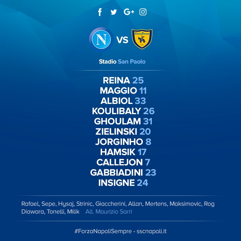 Gara delicata, come ogni partita che le avversarie giocano contro gli azzurri. Mister Sarri propone questi 11: