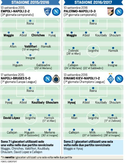 Napoli 2016 e 2017 a confronto. Come era ed è impiegato l’ organico