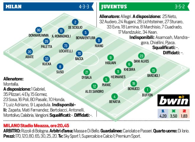 CalcioNewsRassegna Stampa Milan/Juve , ore 20,45 le probabili formazioni del Cds By Giuseppe Sacco il Ott 22, 2016 - 18:00:40 0 Condividi Il Corriere dello sport fa la sue formazioni Factory della Comunicazione FormazioniJuveMilan 0 Condividi FacebookTwitterGoogle+ReddItWhatsAppPinterestE-mail