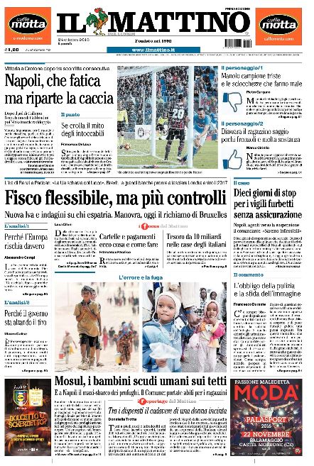 Vittoria importante per il morale e per la classifica, quella del Napoli a Crotone: gli azzurri si riavvicinano alla capolista Juve. La squadra mostra carattere anche quando, in vantaggio per il gol di Callejon, viene espulso Gabbiadini ma riescono prima a raddoppiare con Maksimovic e poi a reggere senza fatica al gol dei padroni di casa. Fonte: Il Mattino