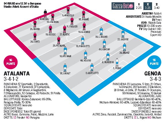 CalcioNewsRassegna Stampa Ore 12,30 – Serie A: Atalanta/Genoa, le formazioni By Giuseppe Sacco il Ott 30, 2016 - 10:20:03 0 Condividi Le formazioni della Gazzetta Factory della Comunicazione Agente FifaAtalantaGenoaLe formazioni 0 Condividi FacebookTwitterGoogle+ReddItWhatsAppPinterestE-mail