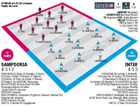 CalcioNews Ore 20,45 – Serie A: Samp/Inter le probabili formazioni By Giuseppe Sacco il Ott 30, 2016 - 18:00:10 0 Condividi Factory della Comunicazione FormazioniSamp.Inter 0 Condividi FacebookTwitterGoogle+ReddItWhatsAppPinterestE-mail