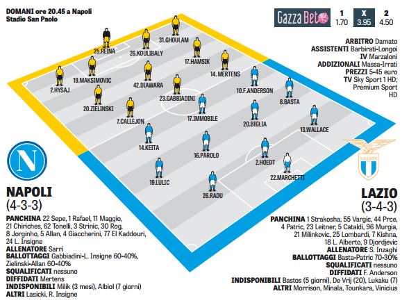 CalcioNewsRassegna Stampa Napoli/Lazio, le due formazioni fatte dalla Gazzetta By Giuseppe Sacco il Nov 4, 2016 - 21:45:12 0 Condividi Così in campo secondo la Rosa Factory della Comunicazione GAZZETTALazioNapoli 0 Condividi FacebookTwitterGoogle+ReddItWhatsAppPinterestE-mail
