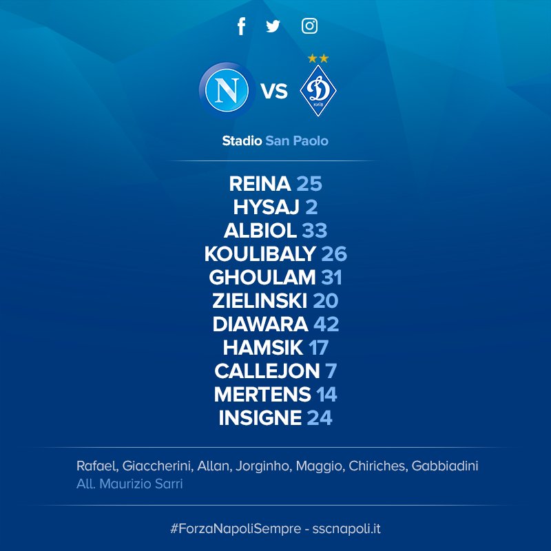 CalcioNewsSlide FORMAZIONE UFFICIALE del N A P O L I – Gabbiadini dalla panchina, Albiol in campo By Giuseppe Sacco il Nov 23, 2016 - 19:41:19 0 Condividi Ultima gara in casa, per l ‘urlo C hampions Sarri li schiera così Factory della Comunicazione formazioneUfficiale Napoli 0 Condividi FacebookTwitterGoogle+ReddItWhatsAppPinterestE-mail