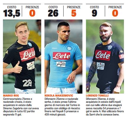 CalcioMercatoNews Il tesoretto che è ancora sulla panca dorata Per Rog, Maksimovic e Tonelli il Napoli ha speso tanto, ma due non hanno mai giocato e il serbo è un caso By Giuseppe Sacco il Nov 30, 2016 - 22:00:23 0 Condividi Questi i costi per singoli calciatori (GdS) Factory della Comunicazione OroPanchinaTesoretto 0 Condividi FacebookTwitterGoogle+ReddItWhatsAppPinterestE-mail