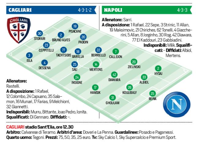 Di nuovo in panchina. La gara è troppo importante e Sarri la vuole vincere. In campo scenderanno così