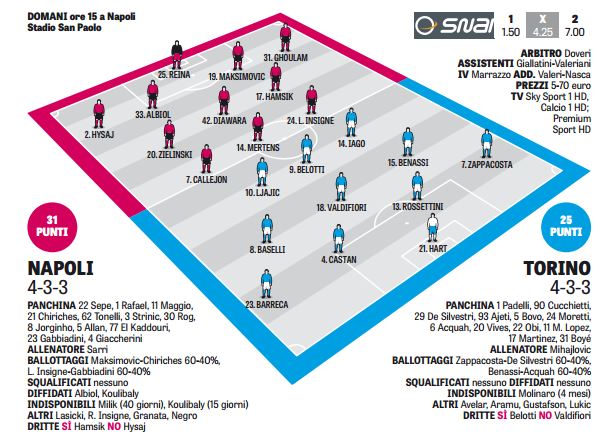 CalcioNewsRassegna Stampa La Gazzetta fa la sua formazione per Napoli/Torino By Giuseppe Sacco il Dic 17, 2016 - 19:31:44 0 Condividi Quasi quella di Cagliari, sol oMaksimovic per l ‘infortunato Koulibaly Factory della Comunicazione formazioneGAZZETTANapoliTorino 0 Condividi FacebookTwitterGoogle+ReddItWhatsAppPinterestE-mail