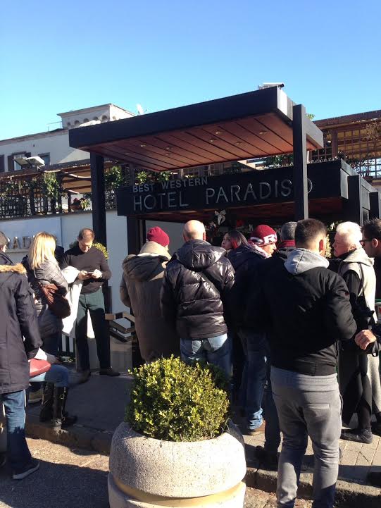 I tifosi del Toro sono circa una ventina e numerosi i bambini incuriositi dai calciatori