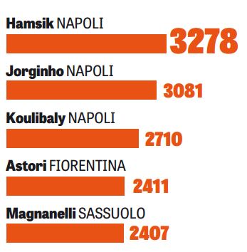 «Guardando la statistica, distinguerei il passaggio vero e proprio da quello di disimpegno. Il fatto che ci siano tre giocatori del Napoli tra i primi cinque della Serie A fa capire quanto il gioco di Sarri sia fatto di manovra. Se la presenza di Koulibaly (per i disimpegni) e di Jorginho (un centrale) non mi stupisce, sono sorpreso da Hamsik: se una mezzala entra così tante volte nel gioco di una squadra nonostante gli spazi ristretti, vuol dire che la sua capacità di smarcamento è notevole. La leadership di Thiago Motta in Europa? Ci ho giocato assieme, lui vive di passaggi ravvicinati. Il fatto che non ci siano giocatori del Barcellona nella Top 5 fa invece capire come la loro filosofia di calcio sia cambiata».