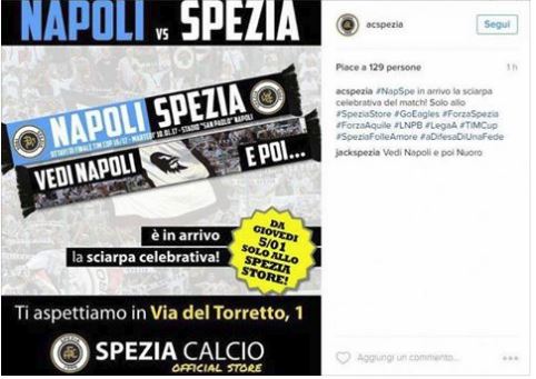 A La Spezia cresce l’attesa per la gara col Napoli: in arrivo una sciarpa celebrativa per il match di Coppa Italia con gli azzurri, postata sul profilo Instagram del club ligure