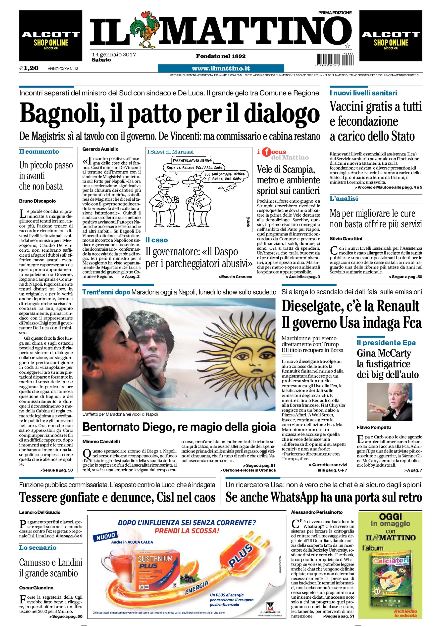Questo spettacolare ritorno di Diego a Napoli, nel senso di ritorno «con spettacolo», nel fuoco d’artificio tra gli offesi paladini della sacralità del luogo che lo ospiterà e i fan della sacralità riconosciuta ai miti, suscita una emozione levigata dal tempo trascorso, trent’anni da un indimenticabile trionfo sui campi di calcio, ma resiste l’affetto grande della generazione prima dei millennials per il ragazzo, oggi vicino ai cinquanta, che fu «uno di noi» e che definì Napoli «seconda mamma mia».