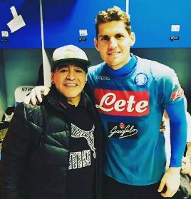 Maradona a Castel Volturno non è certo spettacolo che si vive tutti i giorni, eppure oggi il Pibe ha voluto fare questa bellissima sorpresa ai giocatori del Napoli. Dopo la visita ai campi, Maradona ha visitato gli spogliatoi, dove i ragazzi non hanno resistito, una occasione unica, e specie Jorginho e Rafael, hanno approfittato, ed ecco il loro selfie.