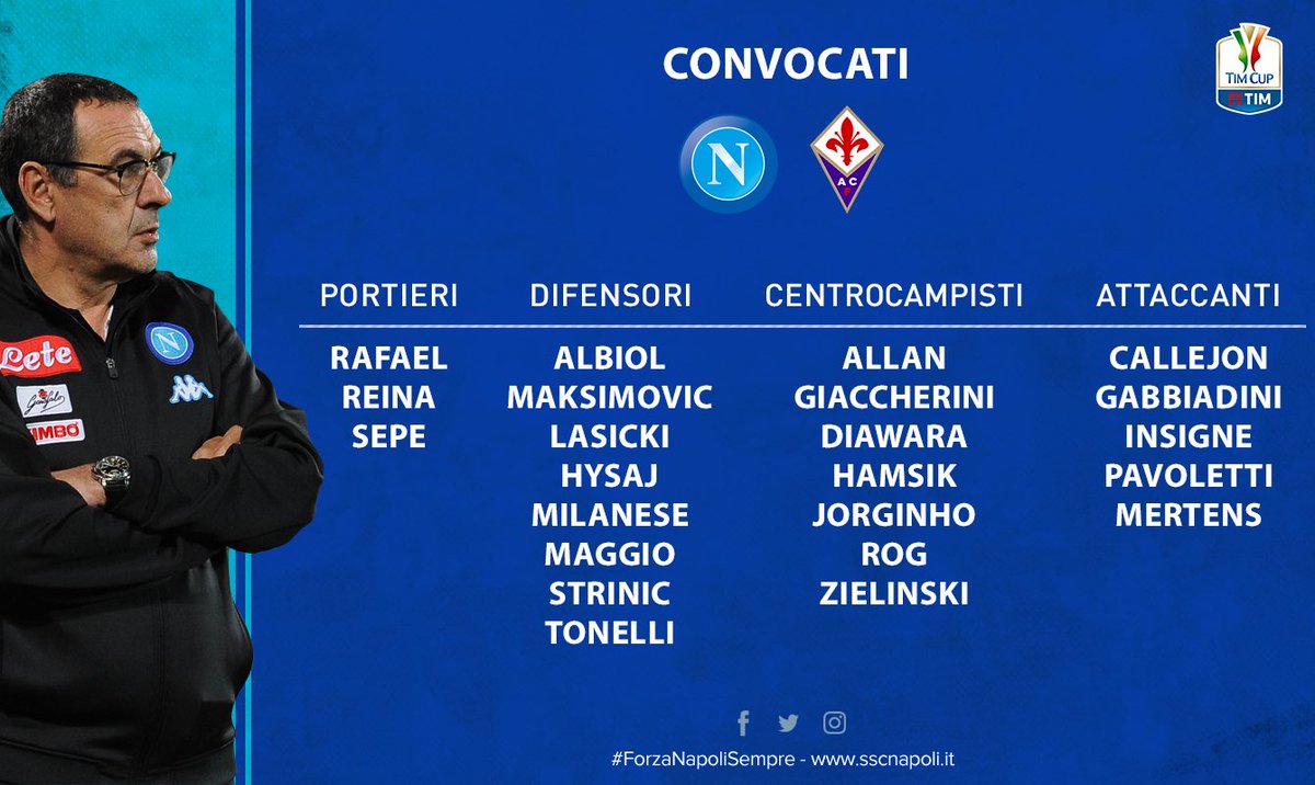 I convocati: Reina, Rafael, Sepe, Albiol, Maksimovic, Lasicky, Hysaj, Milanese, Maggio, Strinic, Tonelli, Allan, Giaccherini, Diawara, Hamsik, Jorginho, Rog, Zielinski, Callejon, Gabbiadini, Insigne, Mertens, Pavoletti.