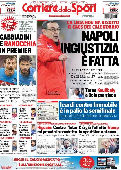Aurelio De Laurentiis CalcioNewsSlide CdS Campania – “NAPOLI Ingiustizia è fatta, caos calendario. La Lega non risolve nulla” By Giuseppe Sacco il Gen 31, 2017 - 08:15:11 0 Condividi Dal 28 febbraio all’ 8 marzo: Juve, Roma e Real Madrid Factory della Comunicazione CalendarioCaosNapoli 0 Condividi FacebookTwitterGoogle+ReddItWhatsAppPinterestE-mail