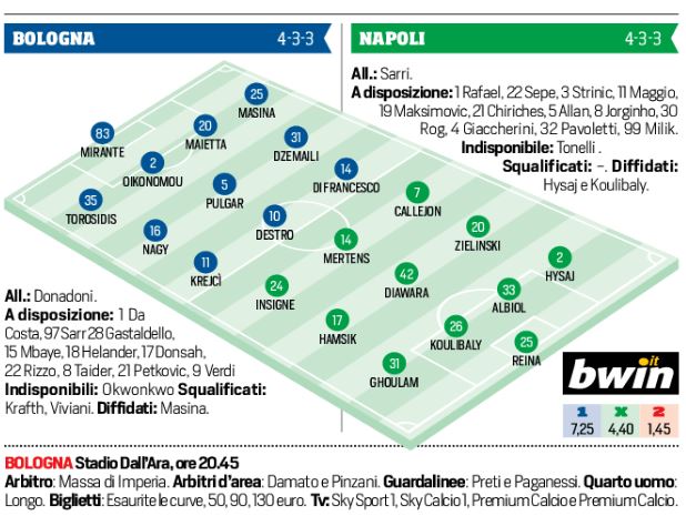 Milik convocato sorride, ecco Bologna/Napoli: in campo così per il Cds. I titolari