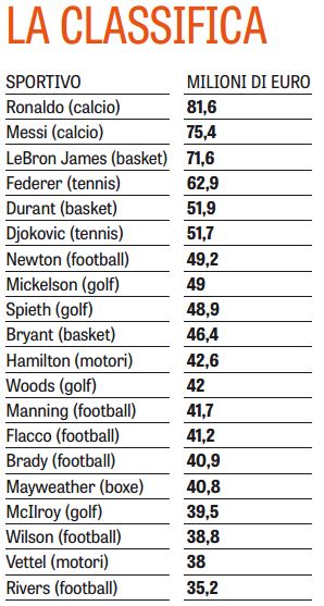 CalcioNewsRassegna Stampa Ronaldo batte Messi anche negli affari: 82 milioni a 75. Tutti gli altri paperoni nello sport By Giuseppe Sacco il Feb 5, 2017 - 21:30:07 0 Condividi Così pubblica ala Gazzetta dello Sport Factory della Comunicazione PaperonisoldiSport 0 Condividi FacebookTwitterGoogle+ReddItWhatsAppPinterestE-mail