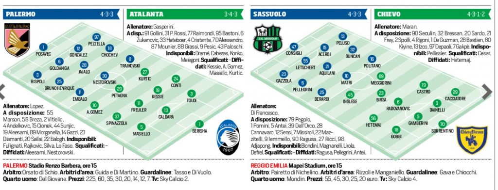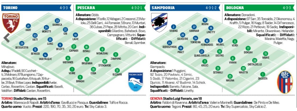 CalcioNewsRassegna Stampa Ore 15,00 – Tutte le gare e le formazioni By Giuseppe Sacco il Feb 12, 2017 - 13:30:44 0 Condividi Eccole secondo il CdS Factory della Comunicazione 13 giornata serie Agareserie A 0 Condividi FacebookTwitterGoogle+ReddItWhatsAppPinterestE-mail