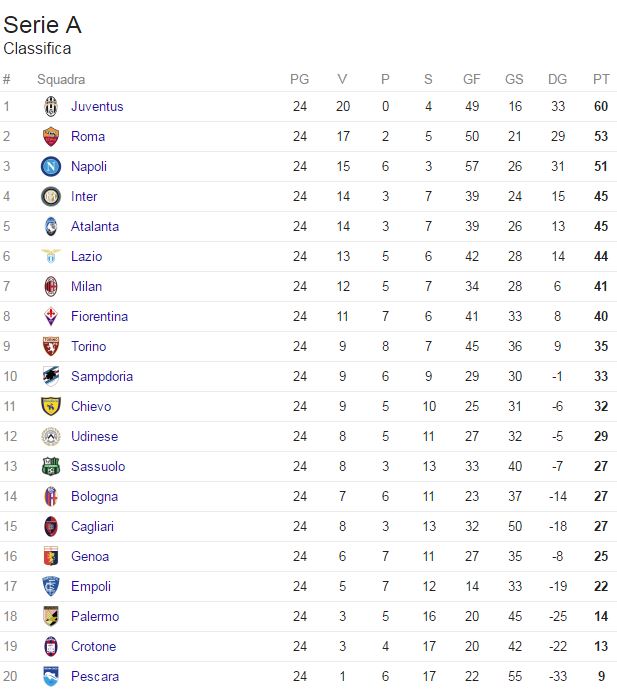 Partono meglio i padroni di casa: all’11’ Biglia impegna dalla distanza Donnarumma al 13′ un colpo di testa di Immobile finisce di poco fuori, al 28′ Donnarumma salva su una conclusione di Hoedt da due passi. Poco Milan, intento più che altro a controllare la gara: l’unico tiro in porta dei rossoneri è di Ocampos al 29′. Al 46′ Lazio in vantaggio per un rigore – contestato dai rossoneri – concesso per fallo in area su Immobile, dal dischetto trasforma Biglia. Al 54′ la Lazio sfiora il raddoppio con Felipe Anderson, al 67′ il Milan protesta per un contatto in area tra Radu e Abate. Padroni di casa ancora pericolosi con Milinkovic-Savic e Immobile (bravo Donnarumma a bloccare la conclusione) All’85’ il pari del Milan con Suso servito da Sosa. La Lazio sale a 44 punti, il Milan va a 41.