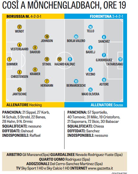 CalcioCalcio EsteroNews Europa League – Ore 19:00, Borussia M./Fiorentina le probabili formazioni By Giuseppe Sacco il Feb 16, 2017 - 17:15:53 0 Condividi Così le formazioni secondo la Gazzetta Factory della Comunicazione BorussiaFiorentinaLeagueuropa 0 Condividi FacebookTwitterGoogle+ReddItWhatsAppPinterestE-mail