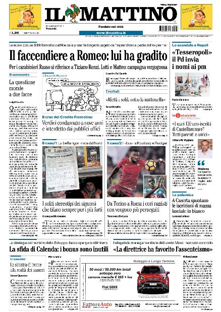 Il Mattino – Da Torino a Roma, i cori razzisti non vengono più puniti!