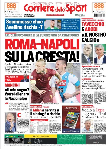 CalcioNewsRassegna Stampa CdS Campania – “ROMA/NAPOLI su la CRESTA” By Giuseppe Sacco il Mar 4, 2017 - 07:10:51 0 Condividi Spalletti: “Non siamo stanchi”. E prepara una sorpresa a Sarri Factory della Comunicazione Ninja-Hamsik che duello crestaHamsikNapoliRoma 0 Condividi FacebookTwitterGoogle+ReddItWhatsAppPinterestE-mail