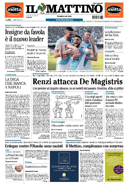CalcioIn EvidenzaNews EDICOLA SPORTIVA – Le prime pagine nazionali By Giuseppe Sacco il Mar 13, 2017 - 07:40:21 0 Condividi Oggi in primo piano troviamo Factory della Comunicazione EdicolaNapolinazionaliPagine 0 Condividi FacebookTwitterGoogle+ReddItWhatsAppPinterestE-mail