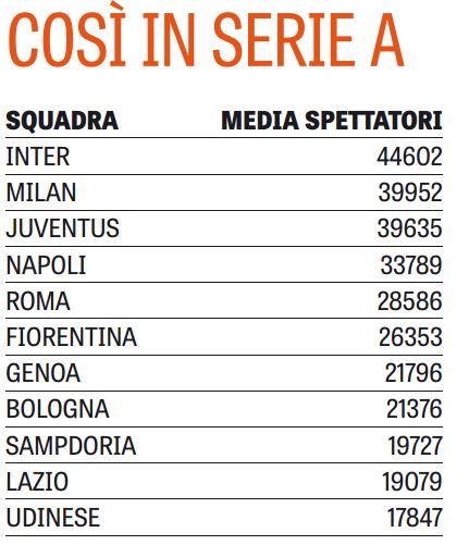 Spettatori: l’Inter sfonda il muro dei 40mila, il Napoli è quarto