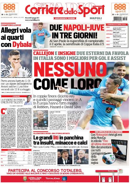 CdS Campania – “NESSUNO COME LORO”. Insigne e Mertens i migliori in Italia