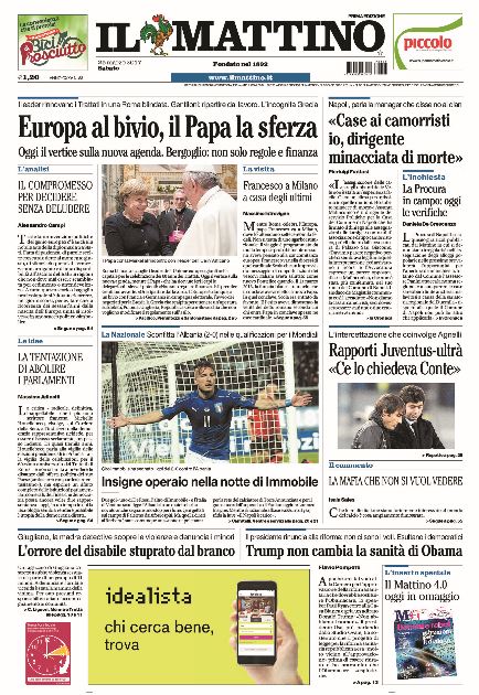 CalcioIn EvidenzaNews EDICOLA SPORT – Le prime pagine nazionali By Giuseppe Sacco il Mar 25, 2017 - 07:40:41 0 Condividi Oggi in primo piano troviamo Factory della Comunicazione EdicolaPagineprimeSport 0 Condividi FacebookTwitterGoogle+ReddItWhatsAppPinterestE-mail