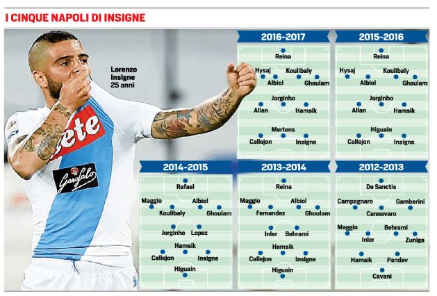 «Sono nel Napoli da cinque anni ormai e credo che questo sia il più forte di tutti». Non quello di Mazzarri, dove lui ha mosso i primi passi, né quello di Rafa, dove ha cominciato a diventare il giocatore che è oggi. «Nelle ultime due stagioni siamo cresciuti molto, si vede la mano dell’allenatore: Sarri insegna calcio. Ci sta insegnando a giocare al calcio. Non che i precedenti tecnici siano stati meno bravi, per carità, però credo che tutti si divertano tanto vedendo giocare questa squadra. Siamo un vero collettivo e un gruppo eccezionale: siamo uniti e ci divertiamo tanto. Speriamo di migliorare ancora il prossimo anno»