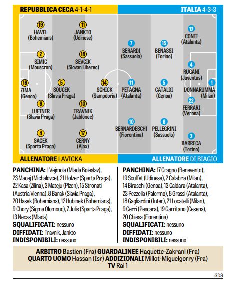 CalcioNewsRassegna Stampa Ore 18:00 – Europei: l’Italia a caccia del bis contro la Repubblica Ceca By Giuseppe Sacco il Giu 21, 2017 - 09:40:41 0 Condividi Azzurri, stasera caccia al bis. Dubbio Caldara, Rugani: «Il segreto della difesa? Tante gare in A» Factory della Comunicazione C ec hiEuropeiItaliaUnder 21 0 Condividi FacebookTwitterGoogle+ReddItWhatsAppPinterestE-mail