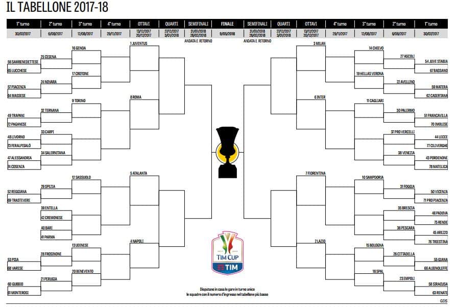 Grafico Coppa Italia: da luglio 2017 a maggio 2018 con la finale